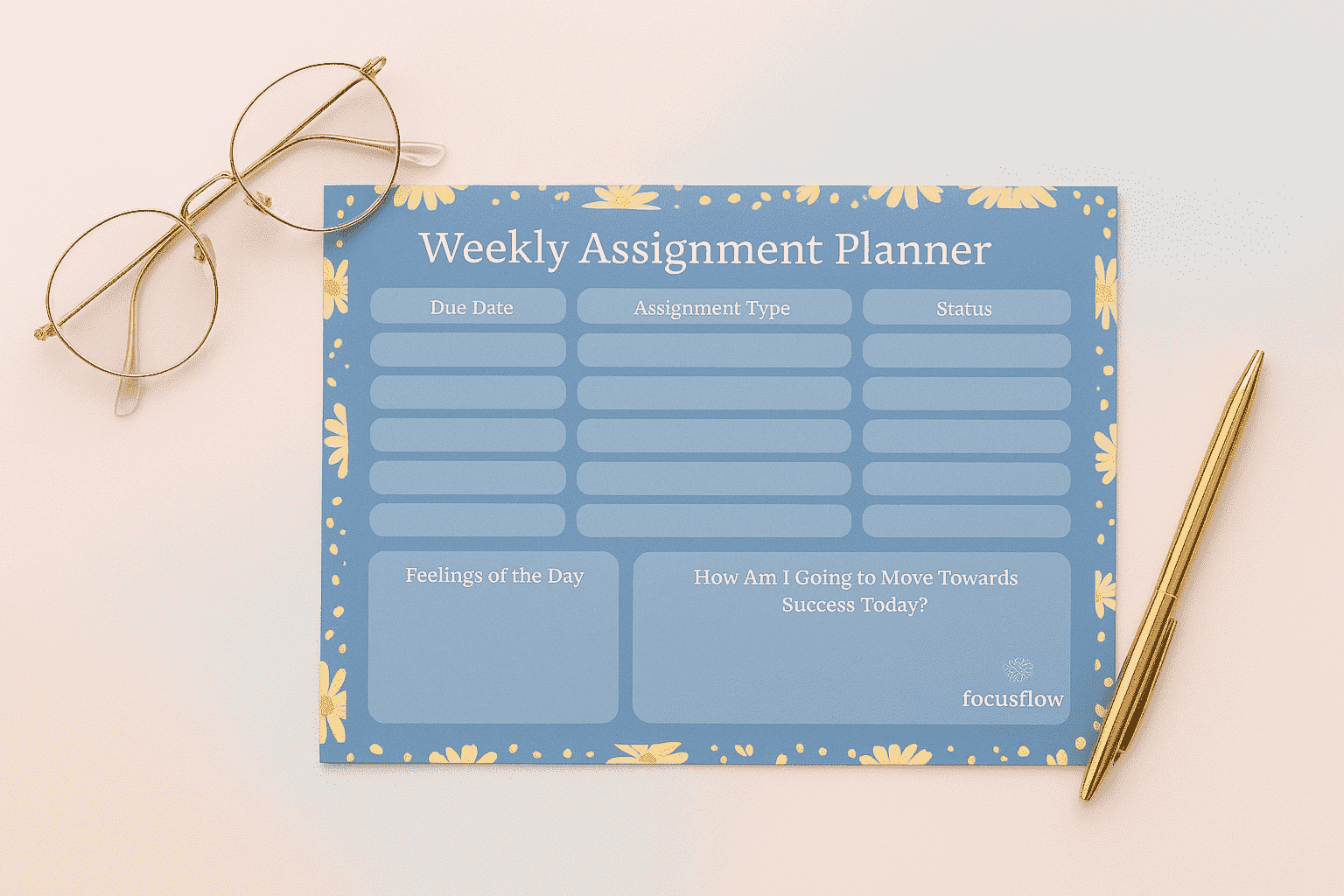 Stay On Top of College Life — One Plan at a Time Looking for a simple, cute way to be more organized? Meet focusflow academic planners! You will always know when your next deadline and no longer have stress over it. Find your focus with your focusflow assignment planner! Sold out Blue Floral Assignment Planner $24.00 Products Shop Products Turn your chaos into clarity, one plan at a time